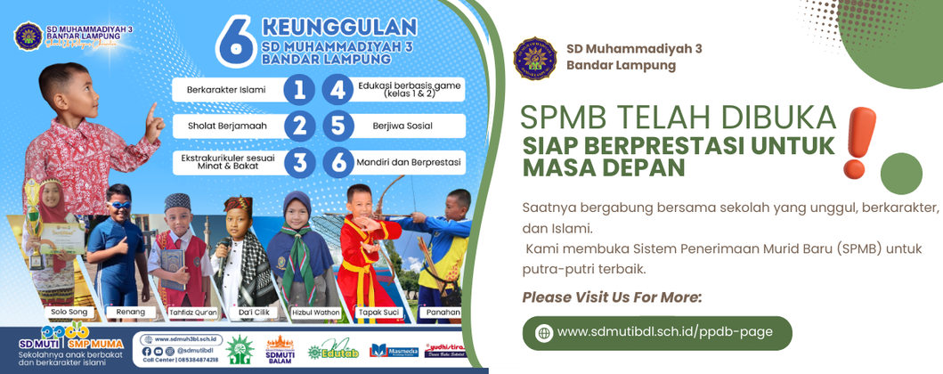 Segera daftarkan putra-putri Anda dan jadilah bagian dari keluarga besar sekolah kami. Kuota terbatas, pendaftaran dilakukan sesuai jadwal yang telah ditentukan.